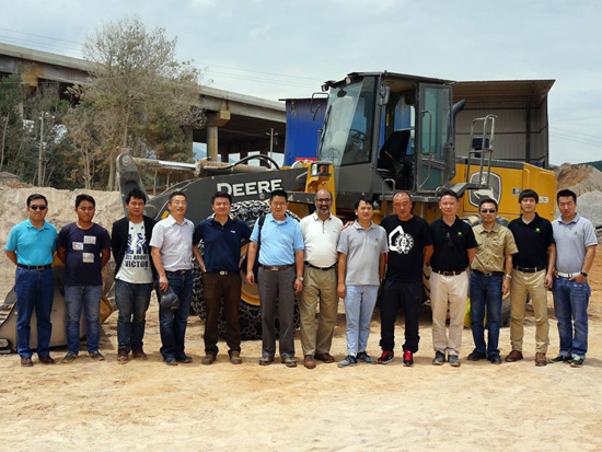 7月27日,由約翰迪爾工程機(jī)械全球設(shè)備總監(jiān)道格·梅爾、迪爾天津工程機(jī)械工廠廠長姜亮領(lǐng)銜的客戶關(guān)愛小組一行十人來到了此次行動(dòng)的首站汶川。汶川客戶潘總實(shí)力雄厚,旗下?lián)碛卸鄠(gè)采石場,年產(chǎn)骨料上千萬噸,他的采石場也是世界知名工程機(jī)械品牌的競技場,諸多性能優(yōu)良的工程機(jī)械設(shè)備都在工地上為潘總創(chuàng)造著價(jià)值。他于2016年中采購了一臺迪爾E360LC挖掘機(jī),礦方一直對這款設(shè)備在工作中表現(xiàn)出的杰出性能和高出勤率贊譽(yù)有加。